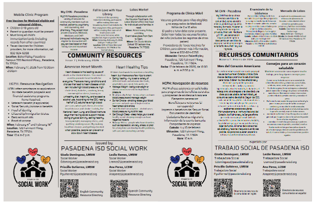 Attached are the February community newsletters. I wanted to highlight two resources from the issue that may be especially helpful for families: The Mobile Clinic Program at BakerRipley Pasadena (7...